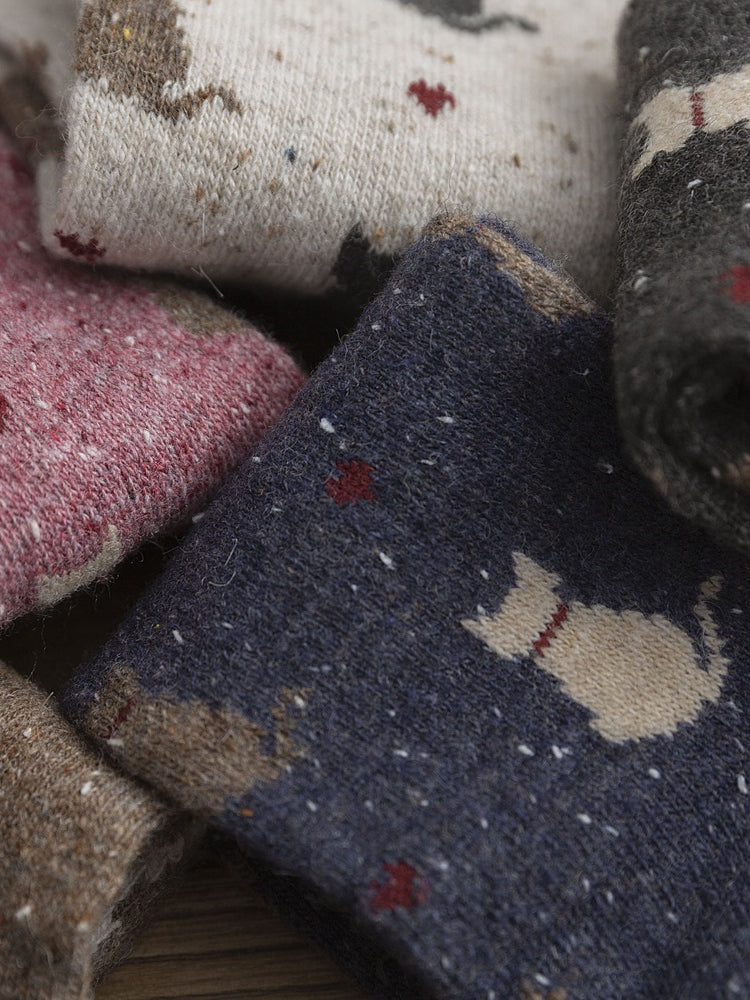 Lovely Cats & Heart Pattern Comfy Knit Socks